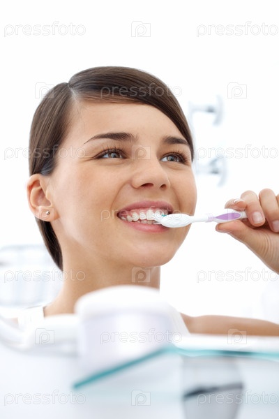 Девушка чистит зубы