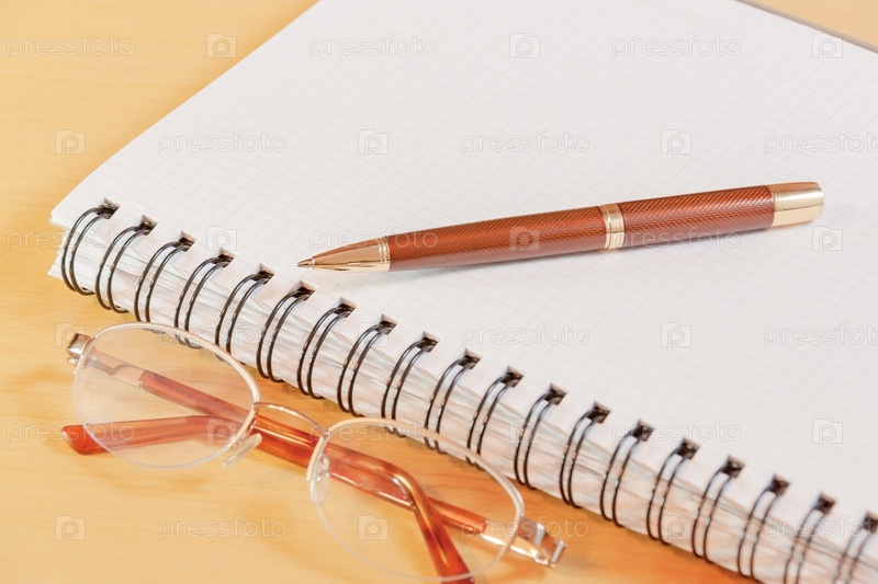 Ручки, блокнот и очки