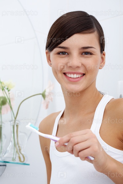 Девушка чистит зубы