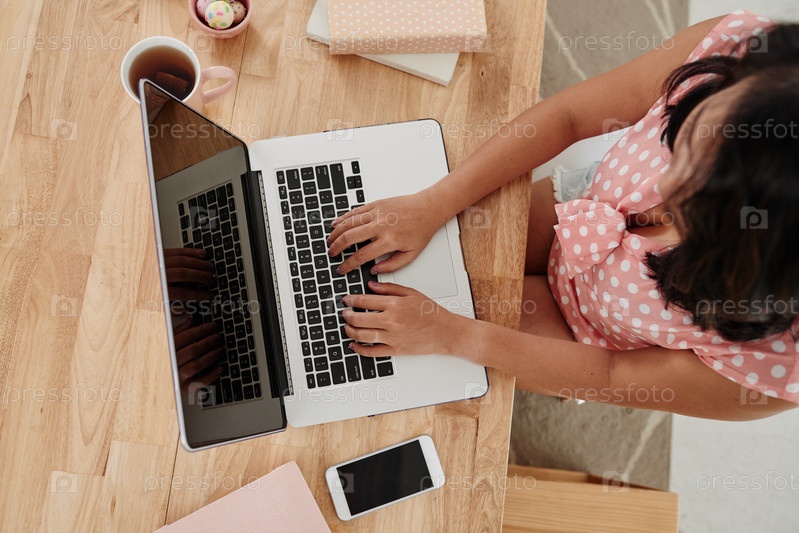 Девушка работает за ноутбуком