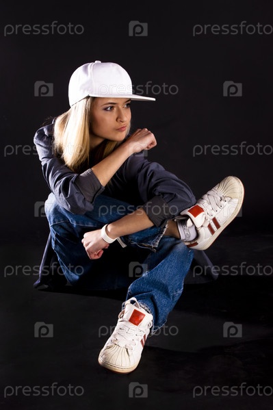Девушка танцует хип-хоп на черном фоне