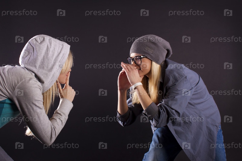 Девушки танцуют хип-хоп на черном фоне