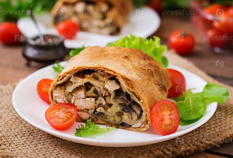 Домашний рулет с курицей, грибами, сыром и петрушкой