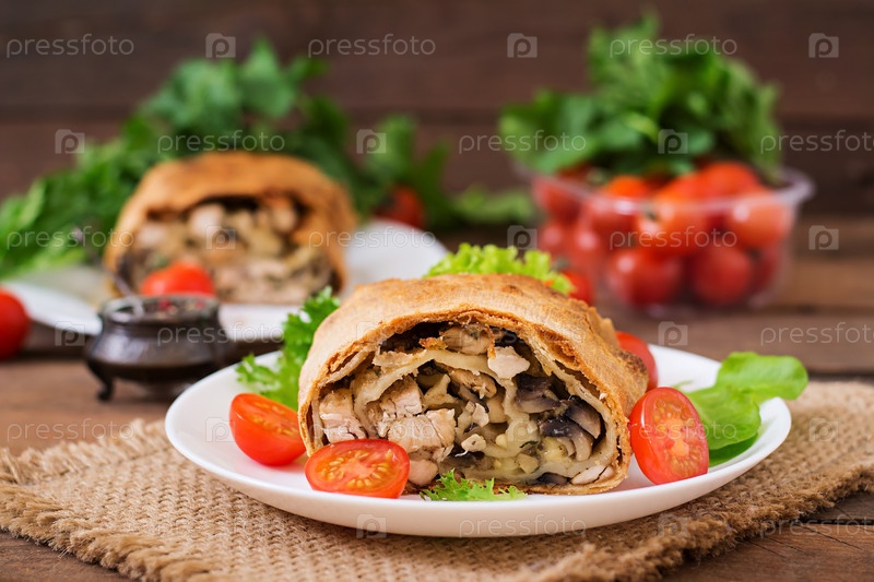 Домашний рулет с курицей, грибами, сыром и петрушкой