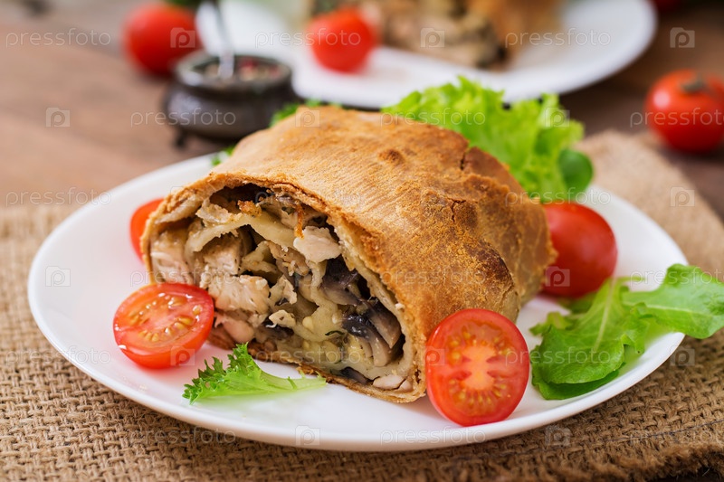 Домашний рулет с курицей, грибами, сыром и петрушкой
