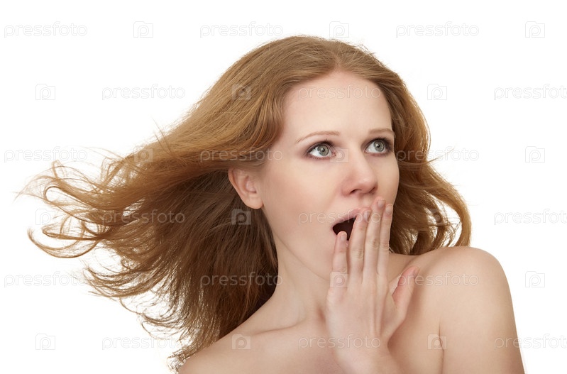 Удивленная девушка на белом фоне