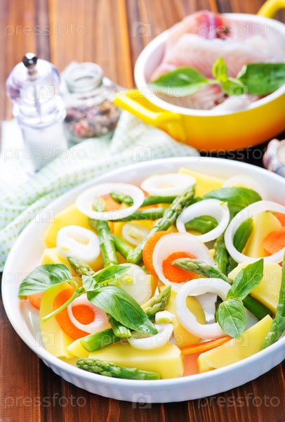 Смесь свежих овощей и филе рыбы