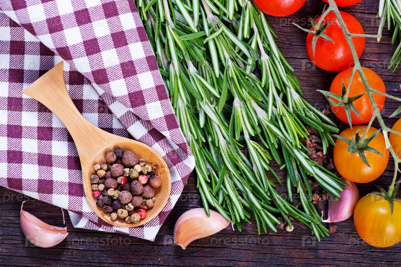 Перец, чеснок, розмарин и томаты