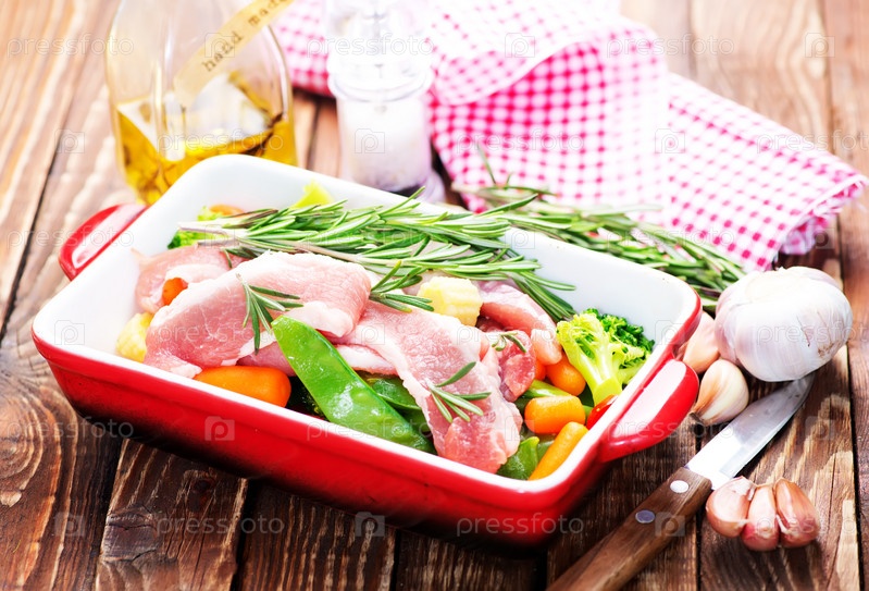 Сырое мясо с овощами
