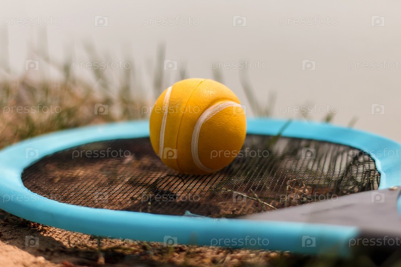 Желтый теннисный мяч и ракетка