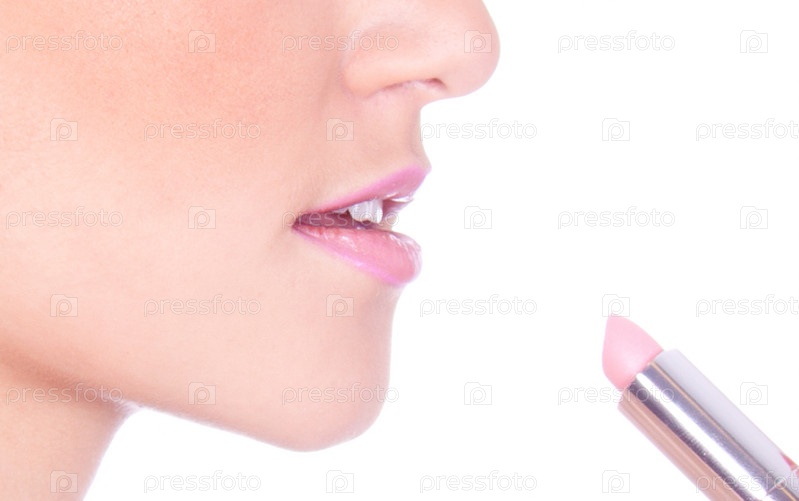 Портрет девушки с губной помадой на белом фоне