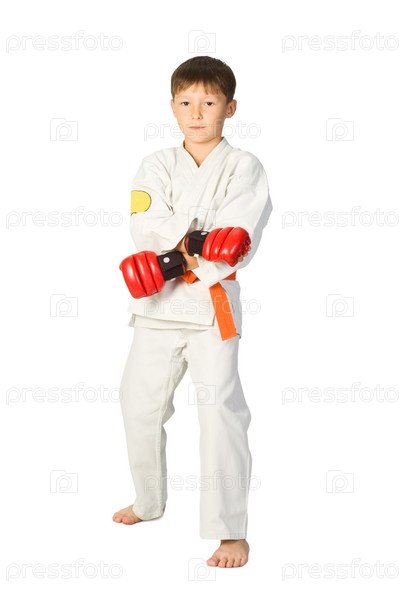 Боец Айкидо, мальчик в белом кимоно
