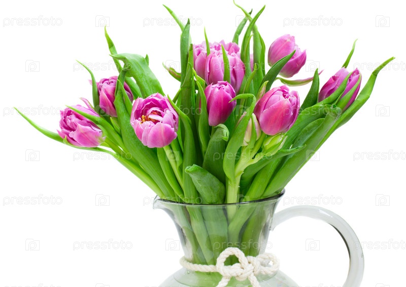 Букет розовых тюльпанов, изолированнйх на белом фоне