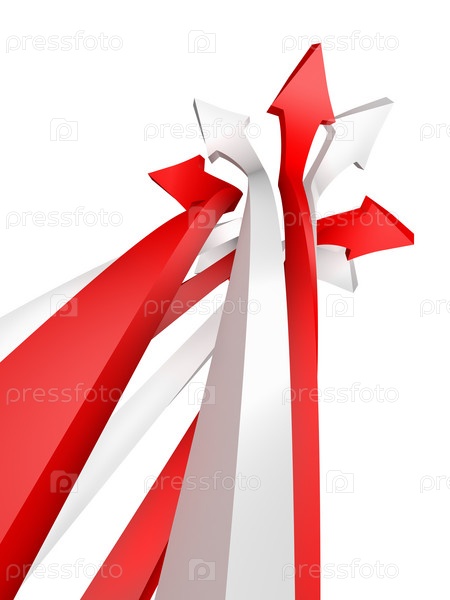 Концептуальное 3D-изолированное изображение стрелки, выделенной на белом