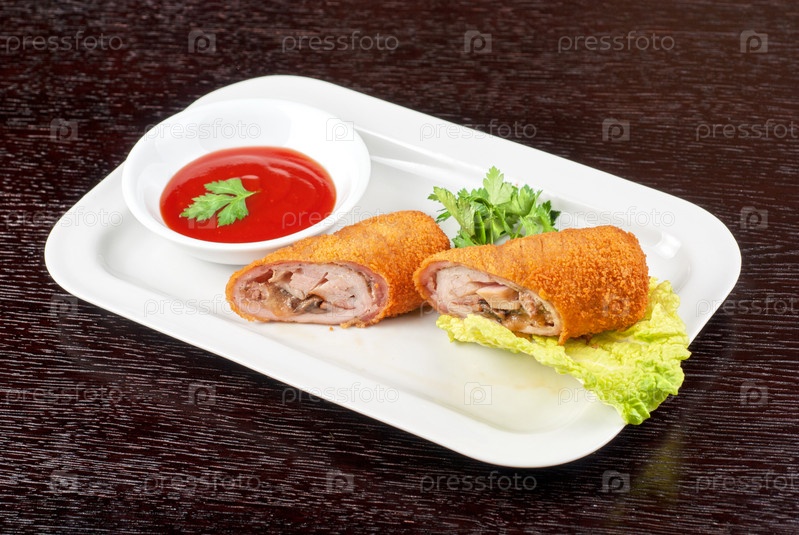 Рулет из свинины, шампиньонов, сыра