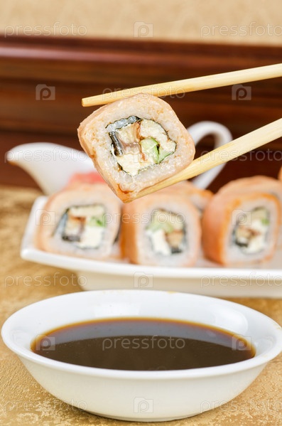 Японские роллы и соевый соус