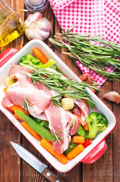 Сырое мясо с овощами