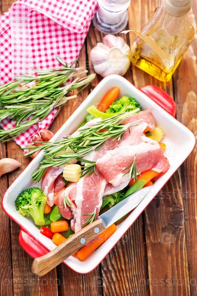 Сырое мясо с овощами