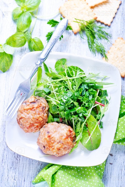 Котлеты с зеленым салатом