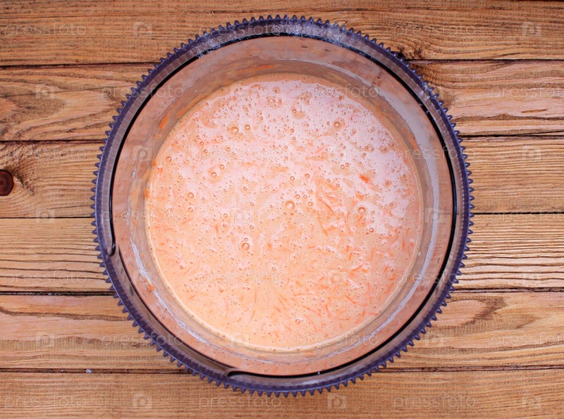 Тесто для морковного торта на деревянном столе