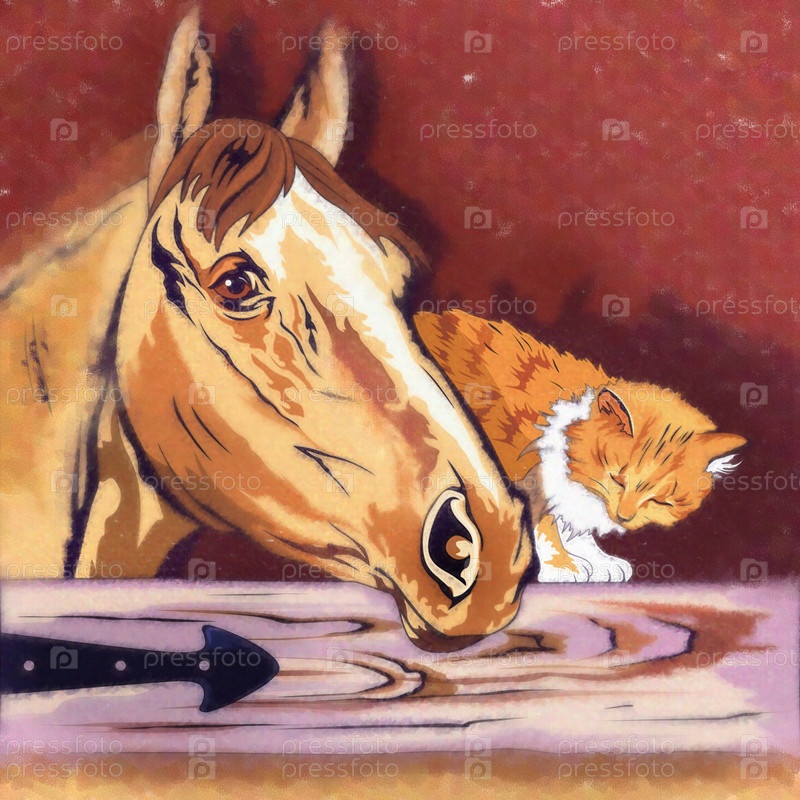 Котенок и лошадь