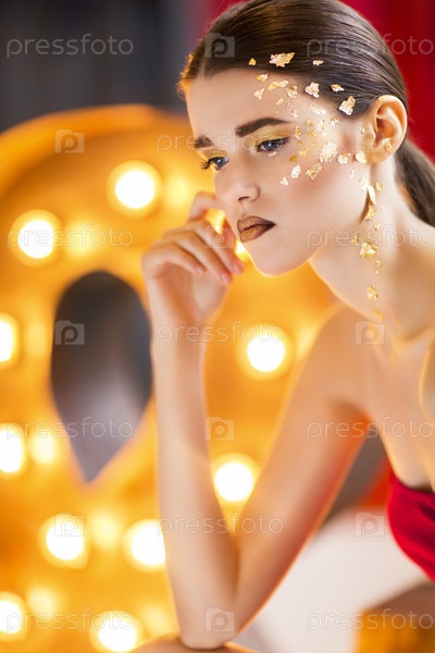 Портрет красивой женщины с яркими блестками
