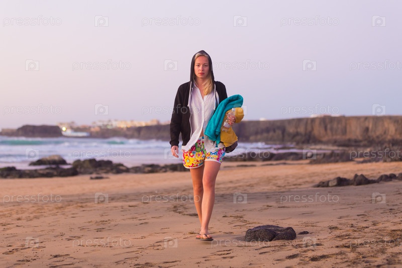Девушка идет по пляжу