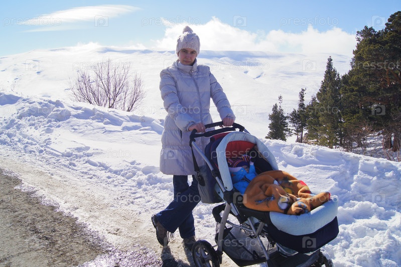 Молодая женщина гуляет с ребенком