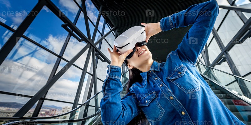 Женщина, носящая очки виртуальной реальности