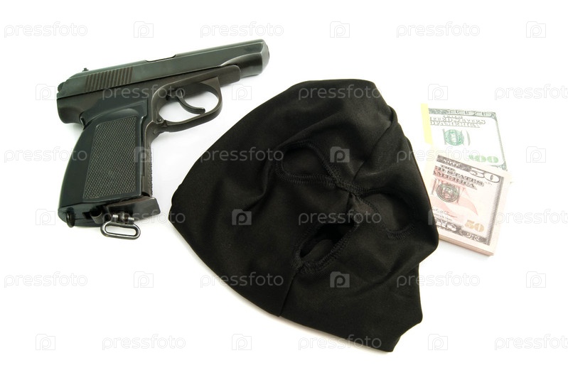 Черная маска, пистолет и доллары