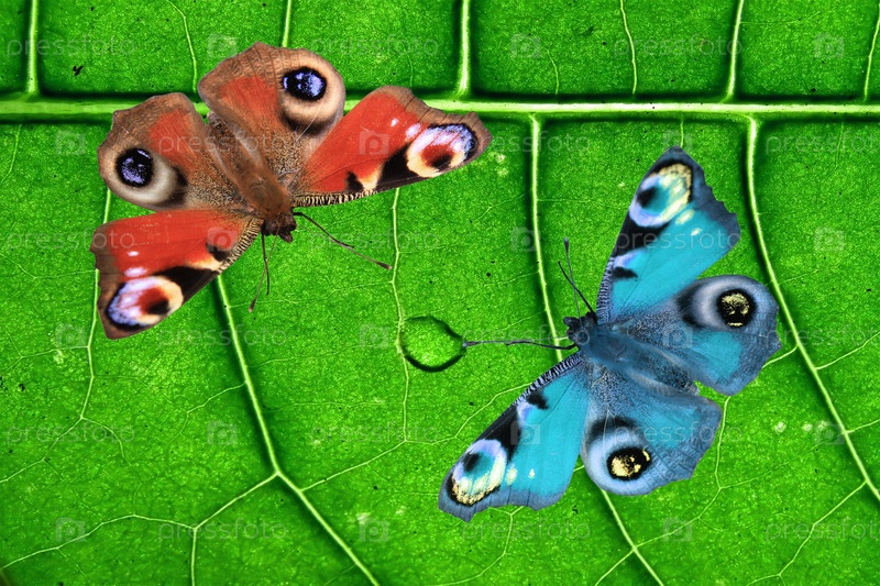 Две бабочки на фоне листа