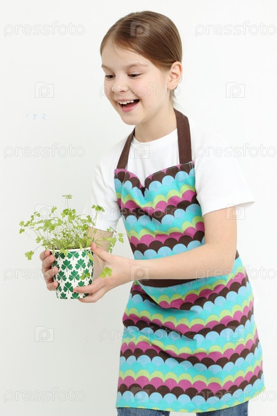 Девочка с рассадой в горшочке