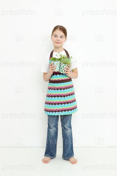 Девочка с рассадой в горшочке