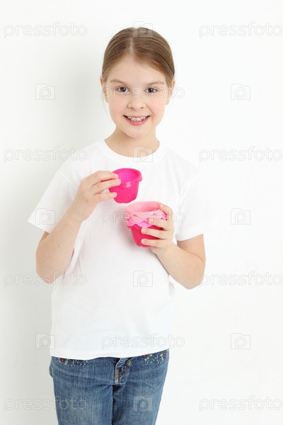 Симпатичная девочка с формой для выпечки