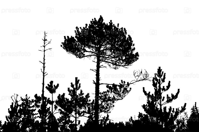 Силуэты деревьев на белом фоне