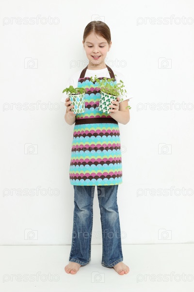 Девочка держит петрушку и зеленый базилик