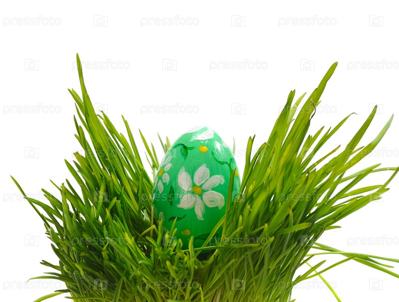 Зеленое пасхальное яйцо в траве