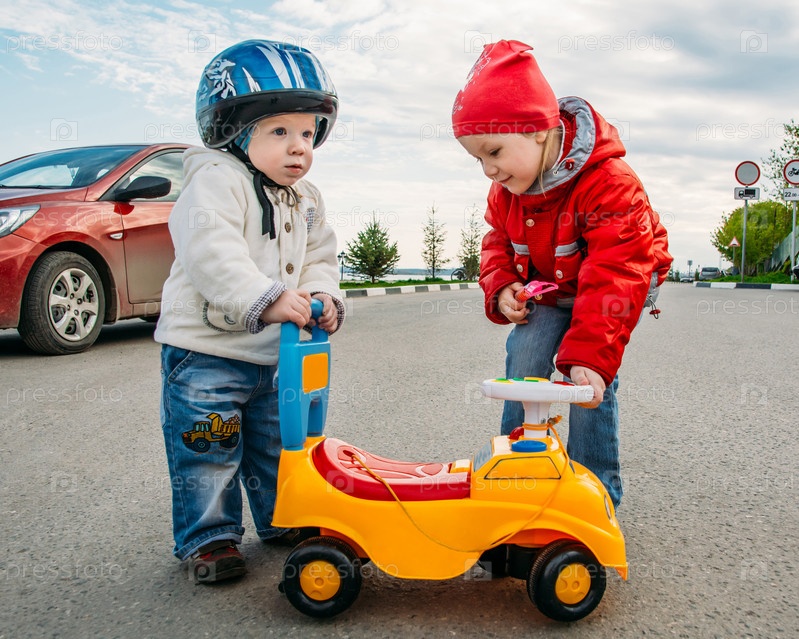 Маленькие дети играют на проезжей части