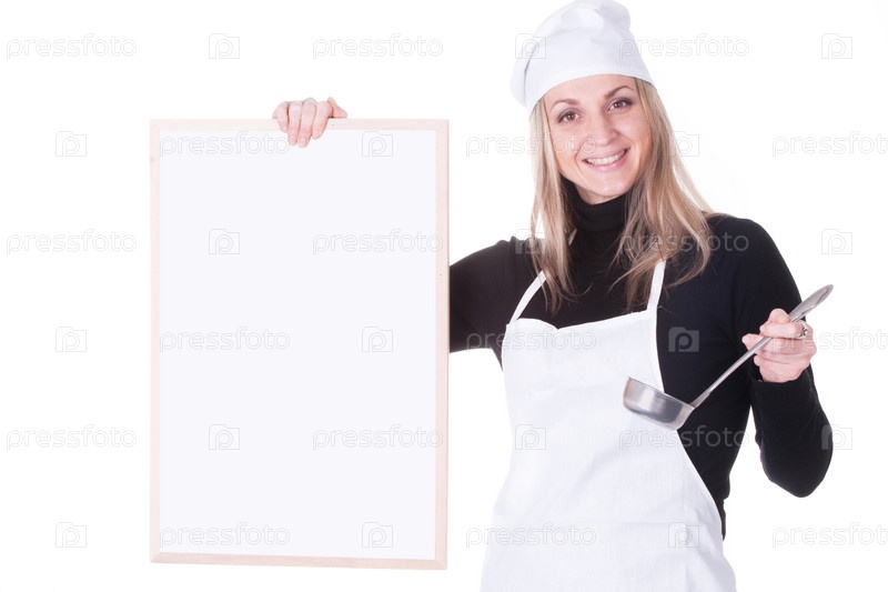Повар с меню на белом фоне