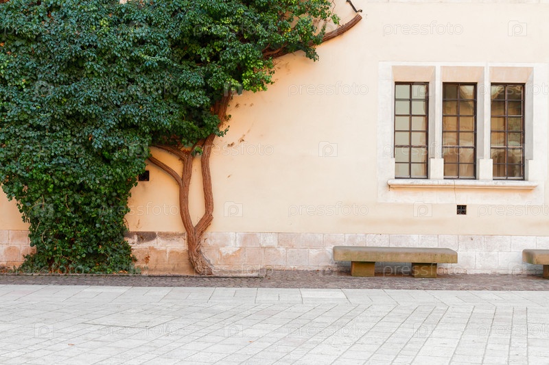 Дерево на стене здания