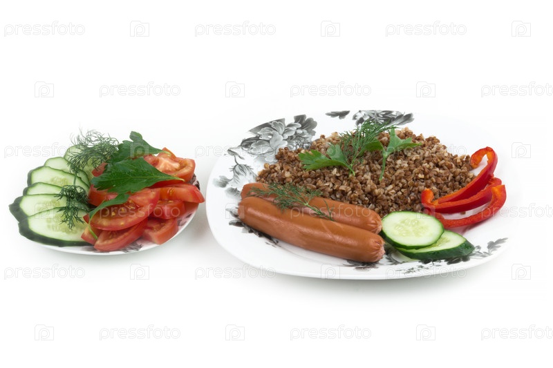Салат и сосиски с гречкой
