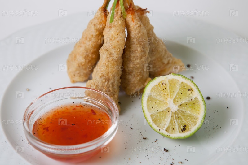 Жареные креветки с соусом