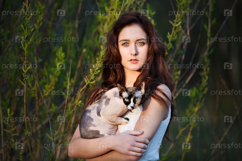 Красивая девушка с кошкой