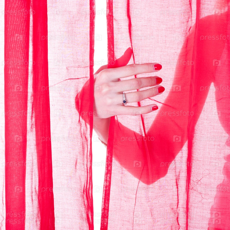 Женская рука за красным занавесом