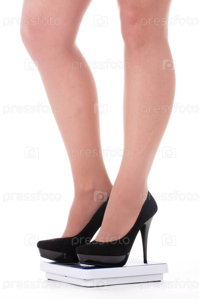 Женские ноги в туфлях на белом фоне