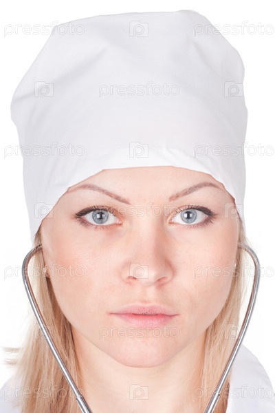 Портрет молодой женщины-врача со стетоскопом