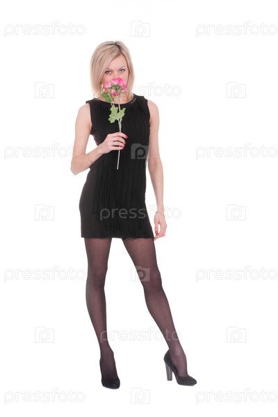 Молодая женщина с цветком на белом фоне