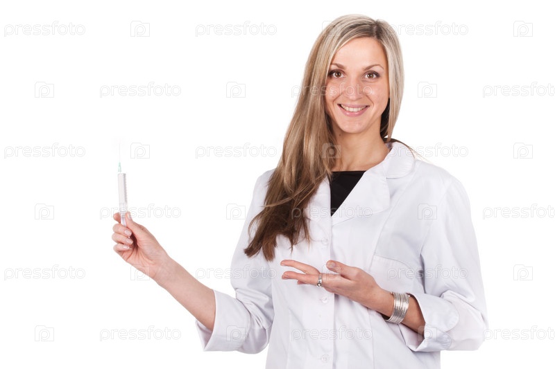 Женщина-врач держит шприц для инъекций в руке