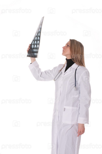Женщина-врач изучает рентгеновский снимок
