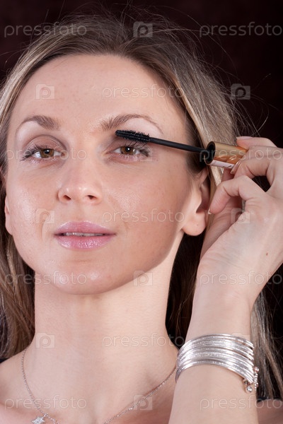 Симпатичная блондинка красит ресницы